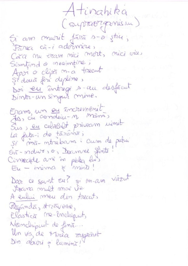 Sus, “eu” celălalt priveam uimit