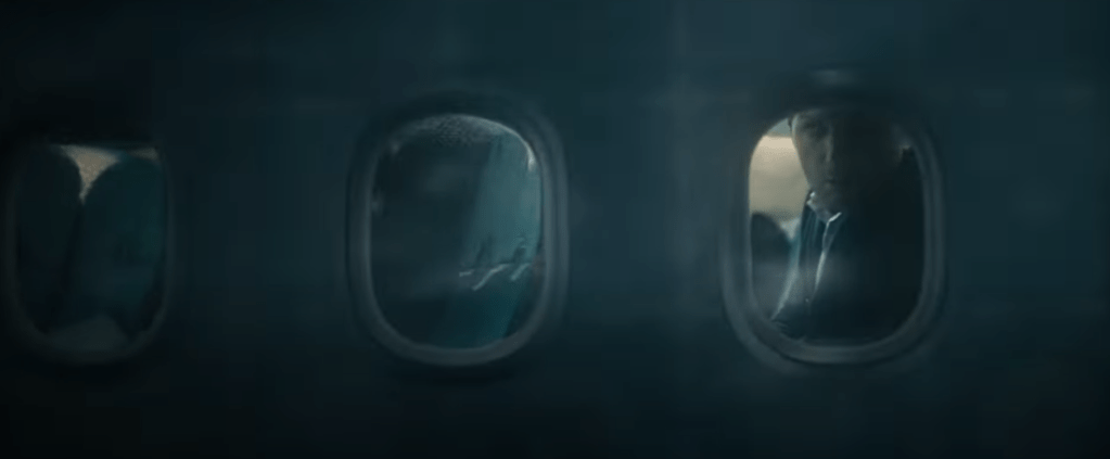 The story is pretty straightforward. A man boards a plane on a rainy night. The flight is going through some turbulence and he thinks he sees a man sitting on the airplane wing, outside, in the freezing rain and wind. He knows it can’t be real, yet there he is. He’s calling the flight attendant in hopes they can realise that something is wrong and alert the pilots but every single time the attendant (or the pilot for the matter) come to see what’s up, the goblin disappears into thin air, making him look crazy.